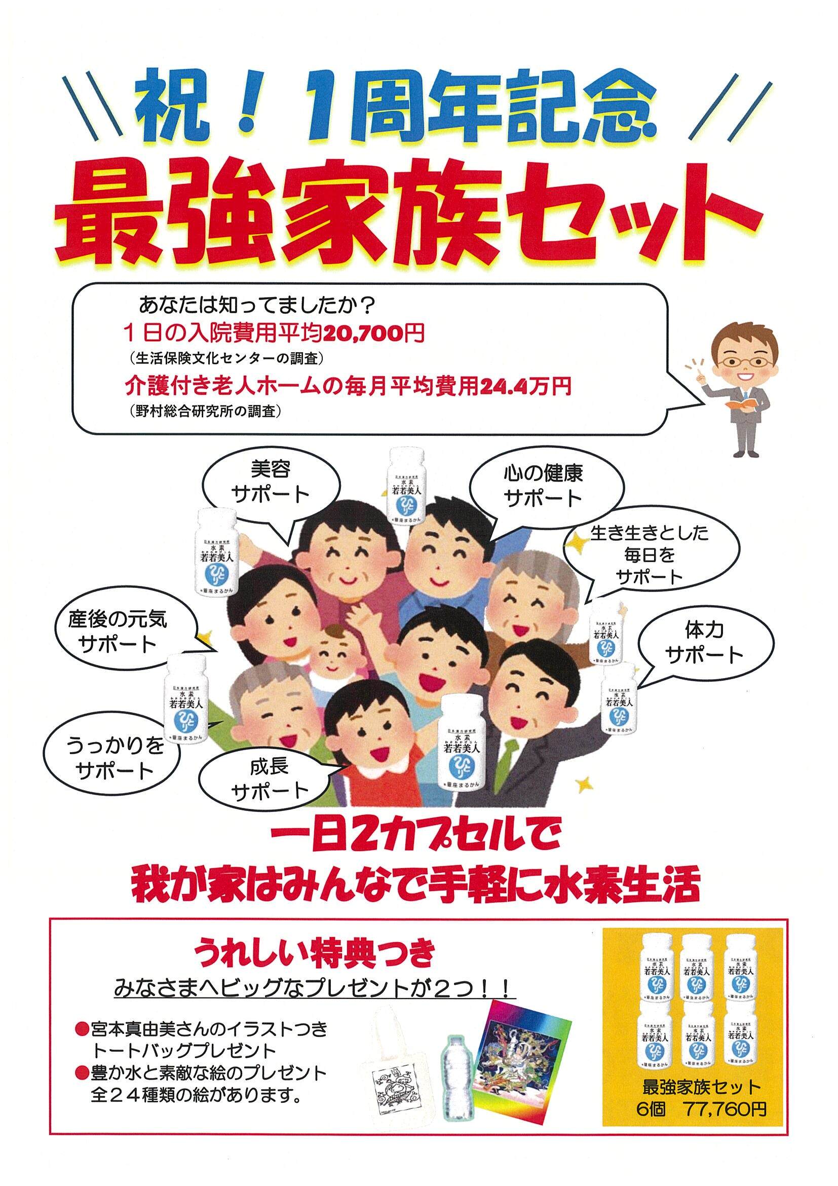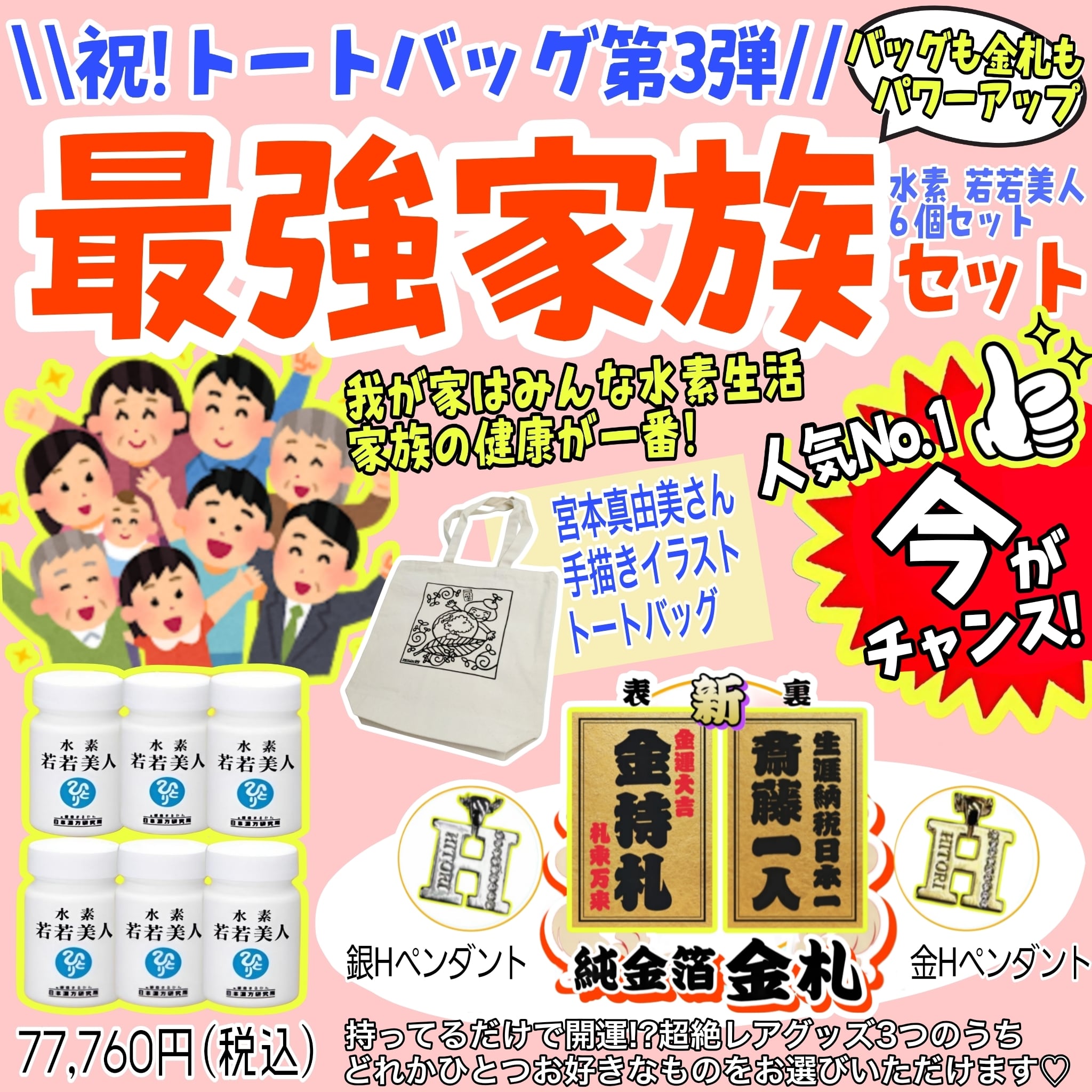 0060水素若若美人ファミリーセット(宮本真由美のイラスト入りエコバックが付いてくる)